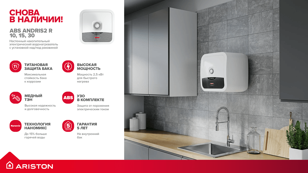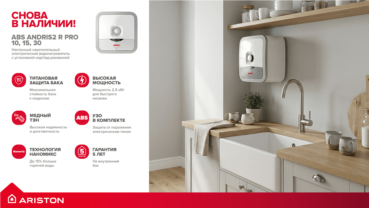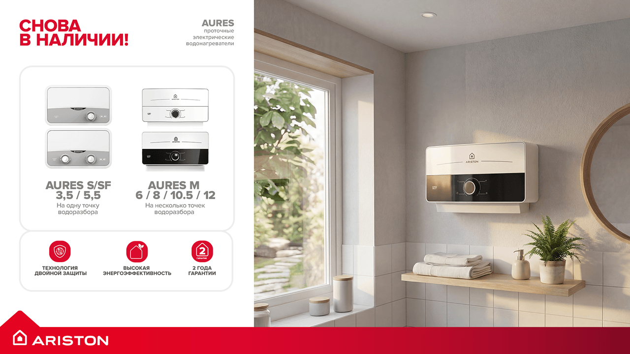 Мы рады сообщить, что на склад вновь поступили популярные серии водонагревателей ARISTON: AURES и ANDRIS2.